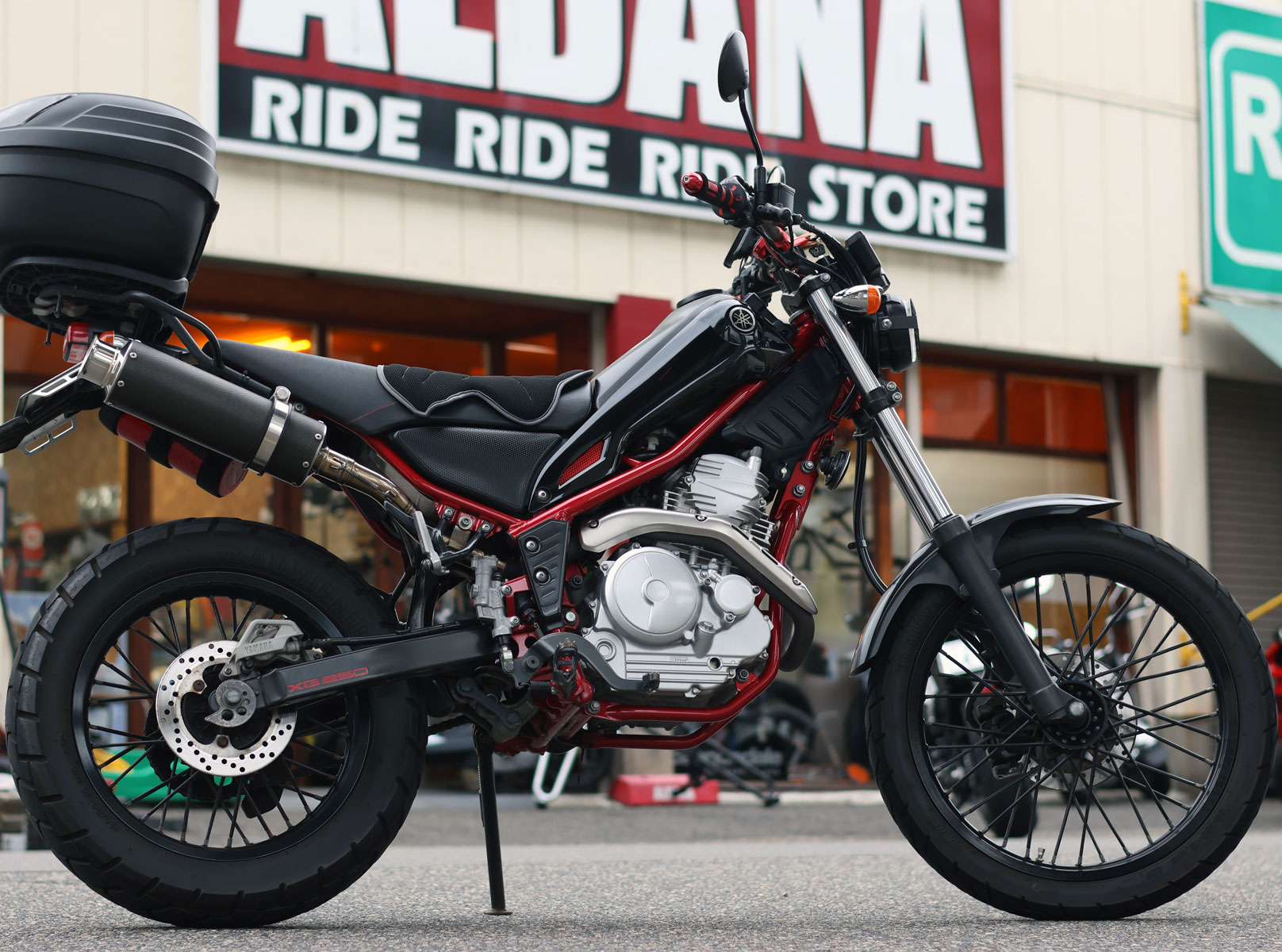 お天気の良い日は こんなステキなオートバイで お客様がいらっしゃいます。トリッカーに合わせてHJCオフロードヘルメットお買い上げありがとうございました。
