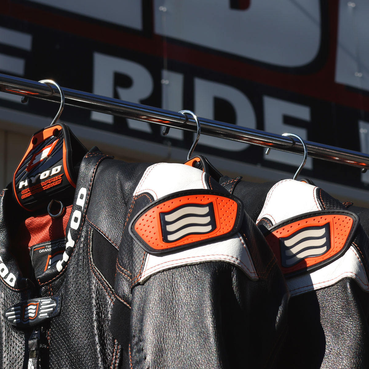 HYODレーシングレザースーツ革ツナギのサイズ確認用サンプルスーツが届きました。サイズは3Lスリム・3Lレギュラーの2着が11月19日(水)まで試着していただけます。HYOD革ツナギに興味のある方もぜひこの機会にご試着下さい。ご来店お待ちしております。