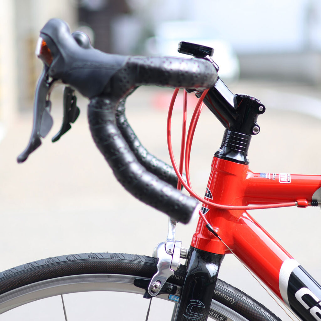 前回 お客様のご希望で 街乗り仕様にとフラットペダルに交換 レーパンを履かなくとも快適なサドルカバーを装着しました。ところがサドルカバーの厚みの分 前傾がきつくなった。もっと楽なポジションがとりたいとのご依頼です。良さげなサイズのステムが見つかりハンドル1本ぶん近く高くなりました。それに合わせてサドル位置角度も調整いたしました。ご来店お待ちしております。