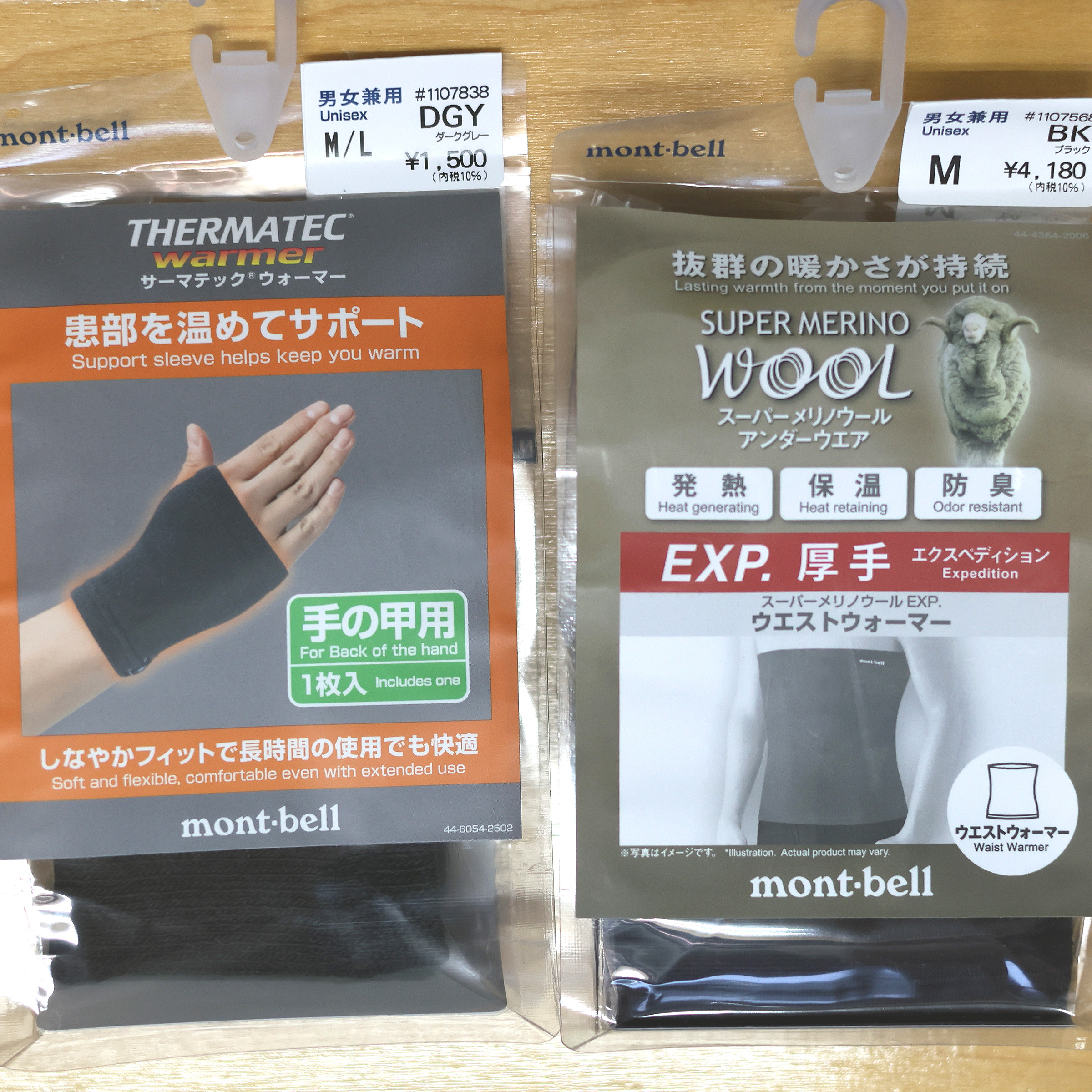 ご注文いただきましたモンベル サーマテックパームウォーマーとスーパーメリノウールEXP.ウエストウォーマーが入荷いたしました。ご来店お待ちしております。