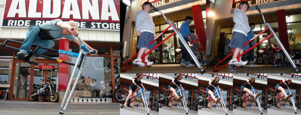トラッパーとは スノースクート・オートバイ・MTBなどハンドル付の乗り物が毎日5分乗るだけで上手くなってしまうというトレーニングマシンでございます。 何とたたみ一畳のスペースさえあればフロントアップやジャックナイフなどアクションライディングの練習ができます。 きっちり正しく体を動かすことで体得できるのです。広い場所も音も気にせずライディングの練習ができます。少し乗るだけで最初は無駄な筋肉を使って息が上がってきますのでメタボ対策にも効果ありです。極意はステップ加重です。ウィンターシーズン前にスノースクートの練習がアルダナ店頭でできてしまうのです。お気軽にお申し付けください。