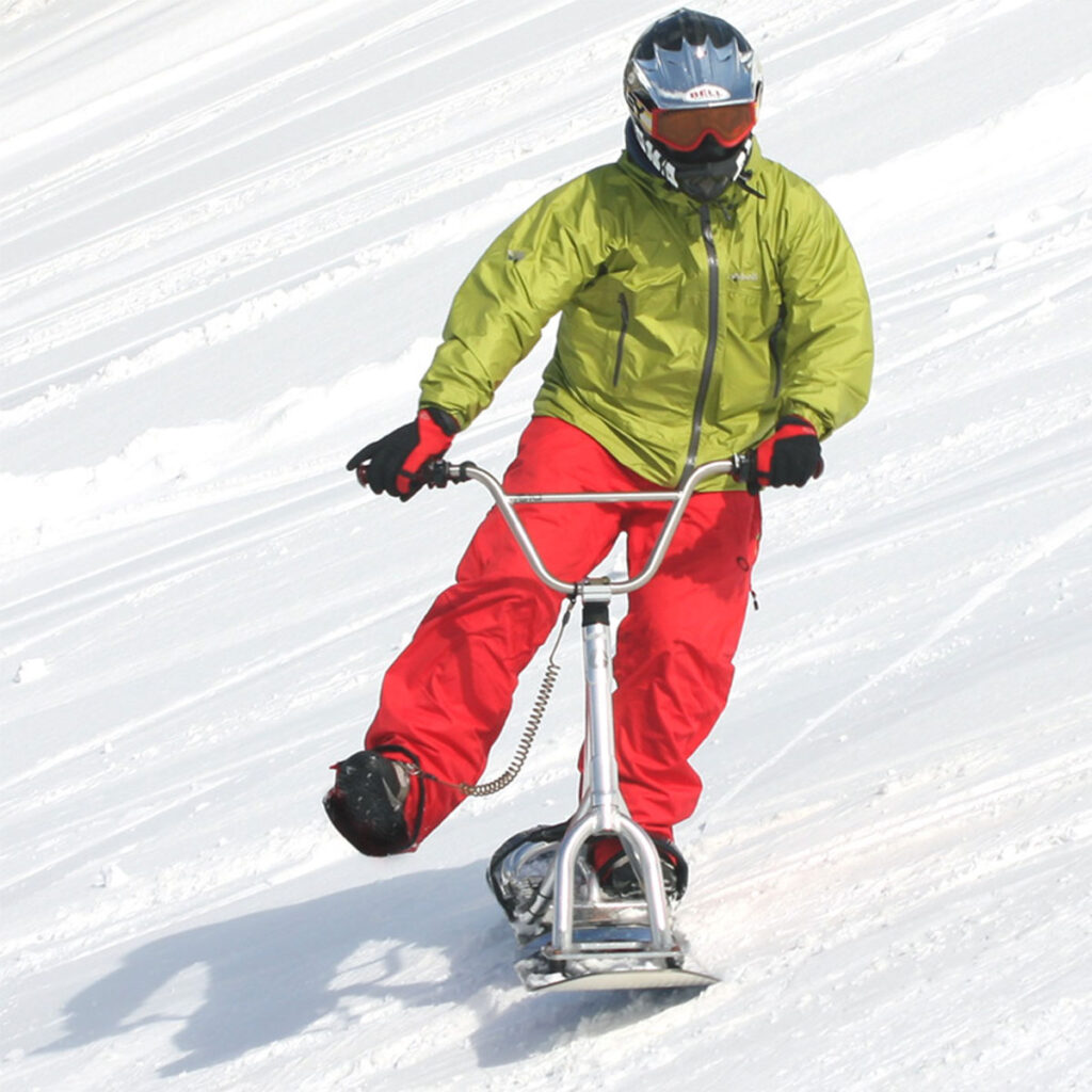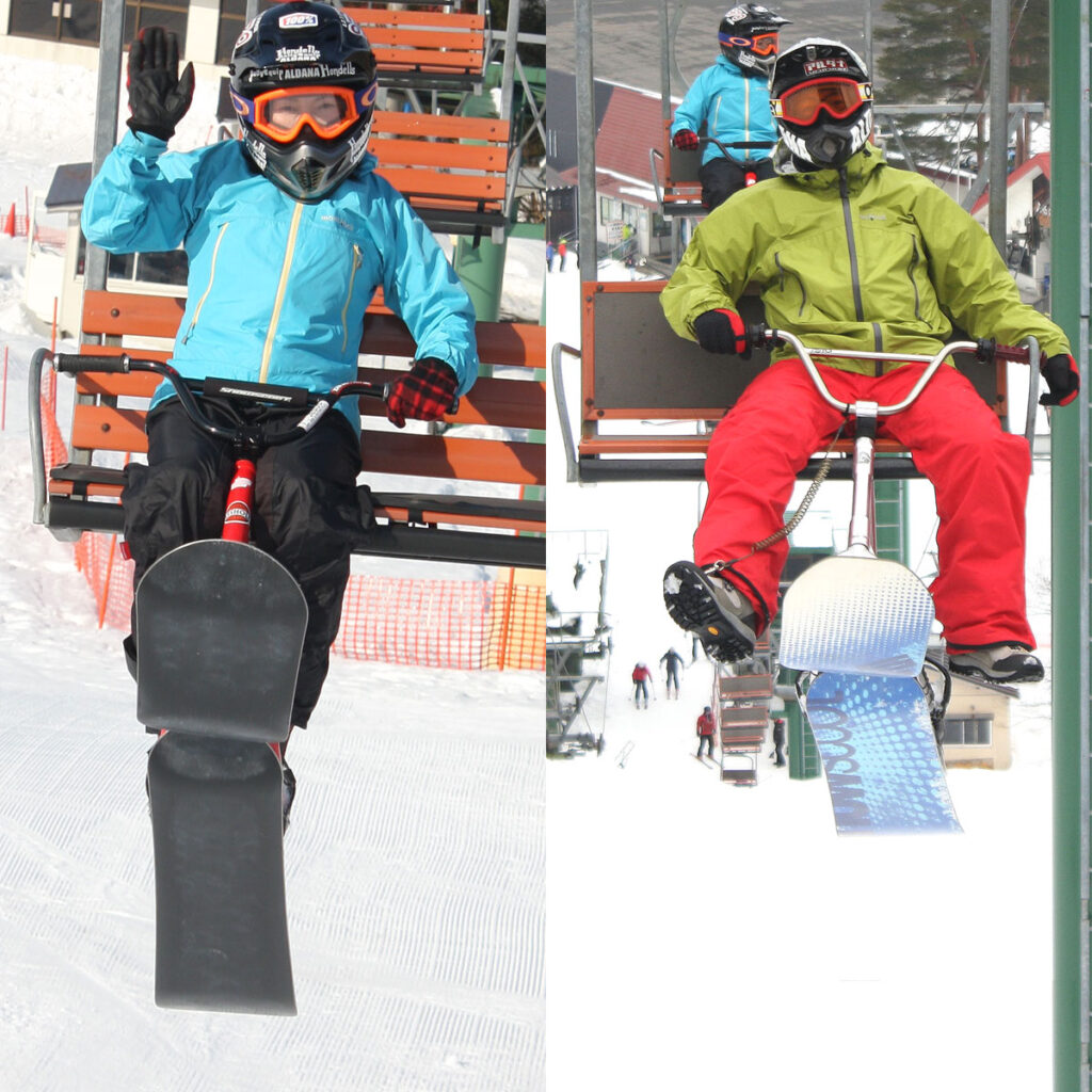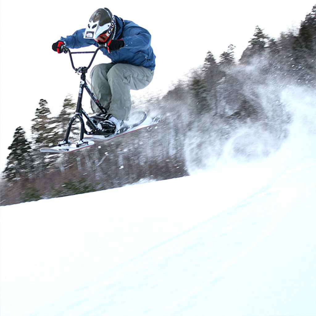 スノースクートは誰でもカンタン!オートバイやMTBとスノーボードを合わせたような操作感で簡単に滑ることができます。リフトの乗り降りもウインタースポーツの中で一番楽です。何はともあれ冬にオートバイやMTBに乗れずに悶々とされる方 雪の中でもバーハンドルを握っていたい方へ ぜひ始めてみませんか?詳しくは当店アルダナまでお気軽にご相談下さい。