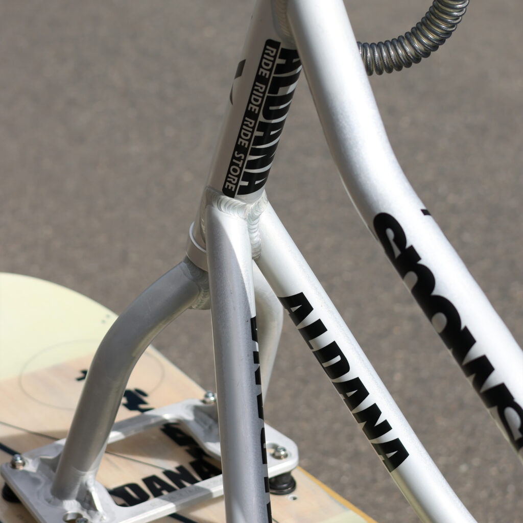 当店アルダナでは新潟県下越地方の湿った雪質や荒れたゲレンデでもコントロールしやすいセッティングで一台一台丁寧に組み上げます。また無料サービスにてご希望のネーム入れ・レタリング・グラフィック承ります。オートバイ乗りやMTB乗りの方がオフシーズン最高に楽しめるスポーツです。お気軽にご相談下さい。